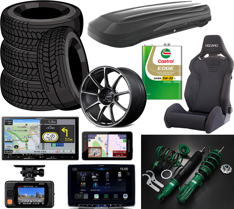 タイヤ・ドレスアップホイール・カーナビ・ドライブレコーダー・レーダー探知機・車高調・サスペンション・スポーツシート・ルーフキャリア・エンジンオイルなどの買い替え・新規購入に、お得な周年セール特典をご用意しています。